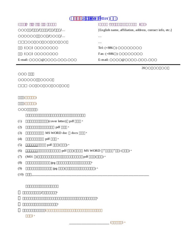 The cover letter template is designed with various key features to facilitate authors in their submission. It includes fillable fields for essential information such as: