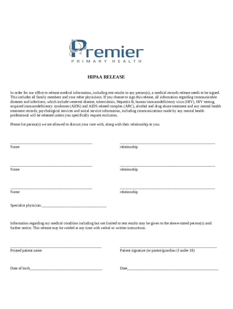Patients who wish to authorize the release of their medical information to specific individuals must complete the HIPAA Medical Records Release Form. It's essential for those wanting to share records with family, legal representatives, or insurance companies.