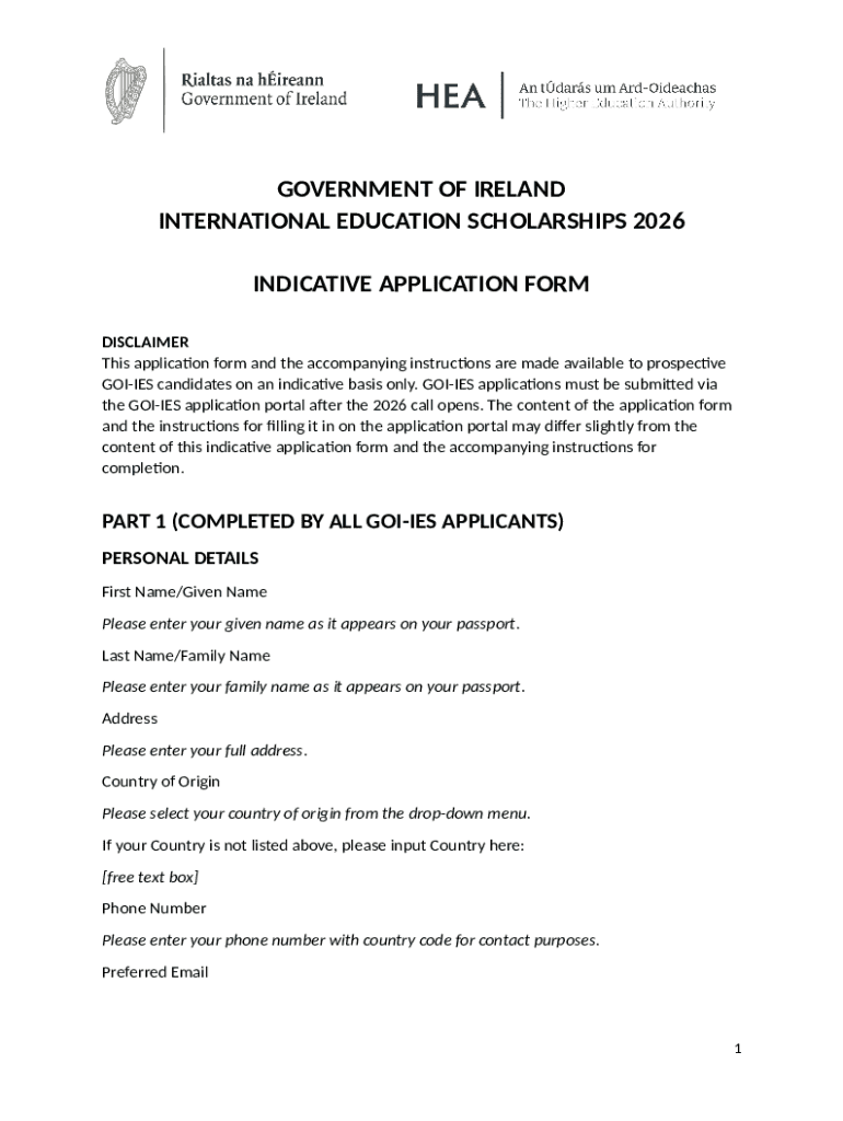 The GOI-IES 2026 Application Form serves as a vital document for students wishing to apply for the Government of Ireland International Education Scholarship. This form is integral for international students seeking financial support to pursue their higher education in Ireland. It is essential for applicants to understand the eligibility criteria outlined in the form, as these requirements determine who may apply for this valuable opportunity.