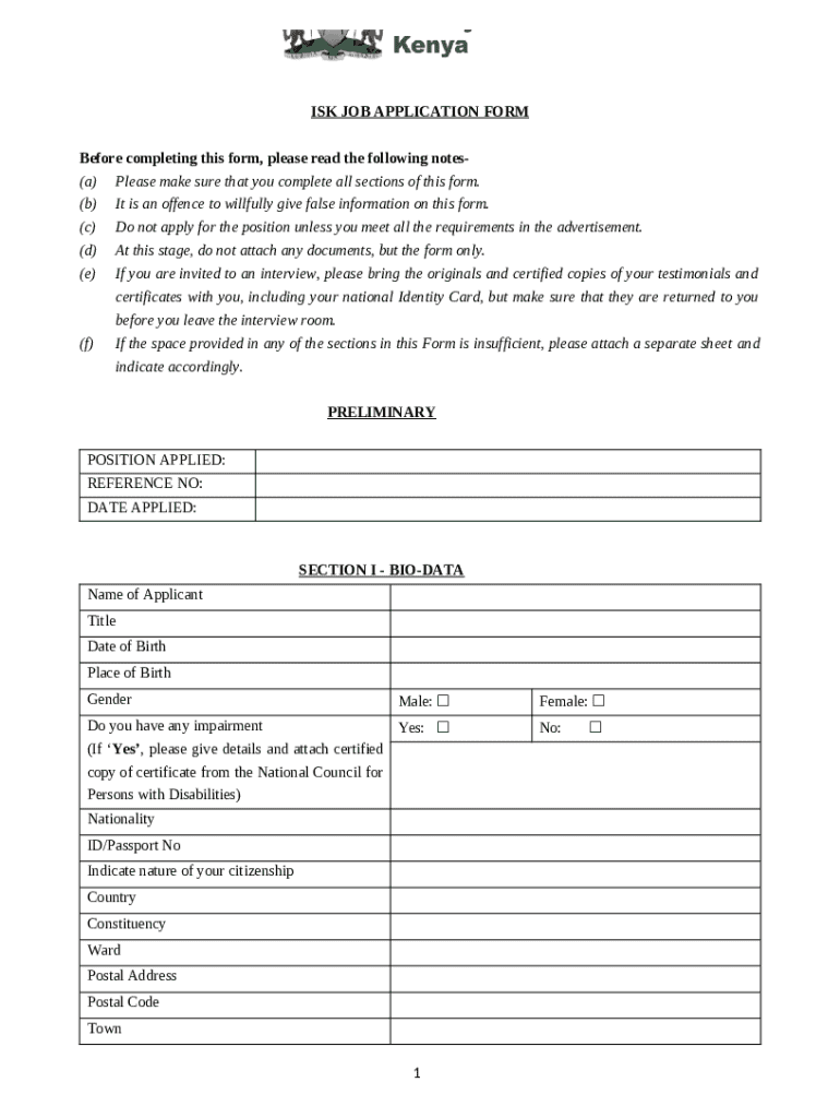 The ISK Job Application Form consists of several vital sections that applicants should familiarize themselves with, including personal information, academic qualifications, and professional experience. Each section is designed with clarity, featuring fillable fields and checkboxes for ease of completion.