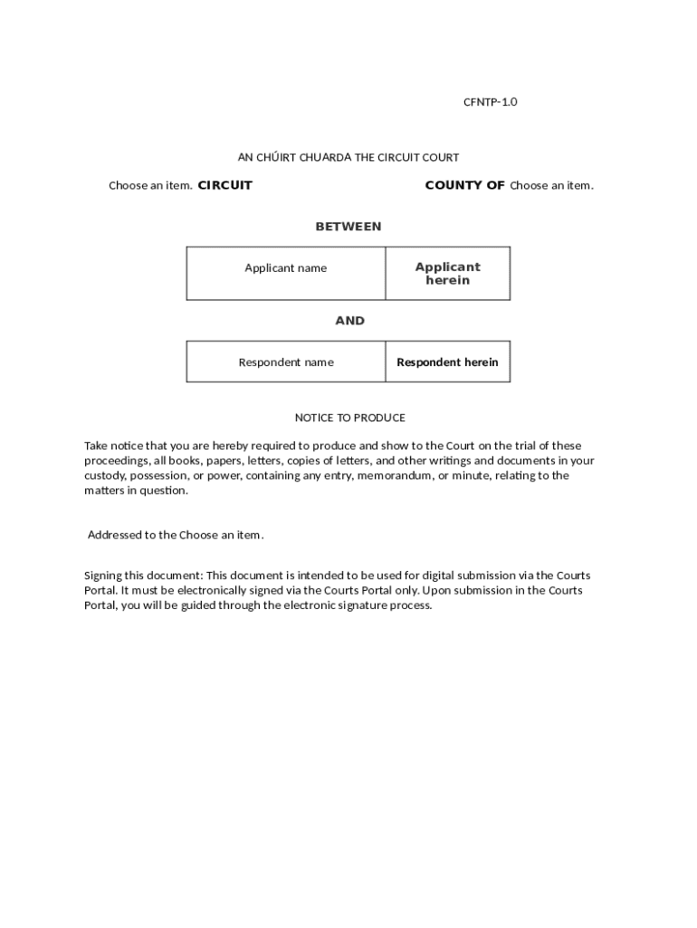 The Notice to Produce is a legal document used by parties in court proceedings in Ireland to compel the production of relevant documents for a trial.