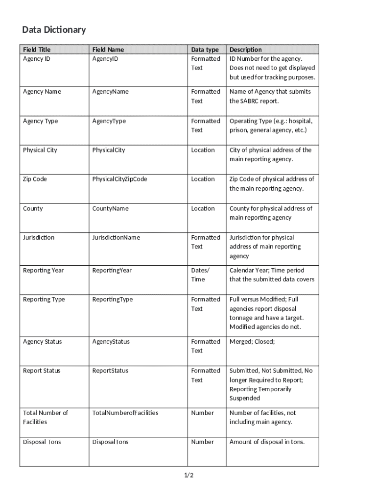 Each field serves a specific purpose in capturing necessary data and facilitating easier analysis. The comments section allows agencies to provide additional context regarding their disposal practices.
