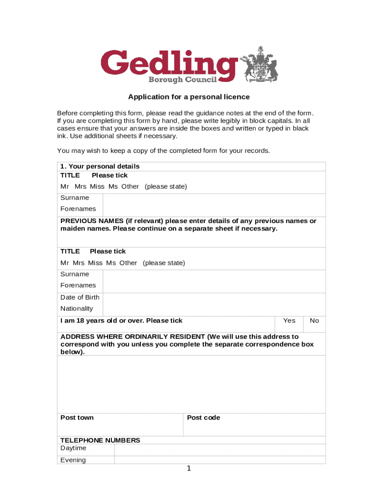 Get the free Personal Licence Application Form