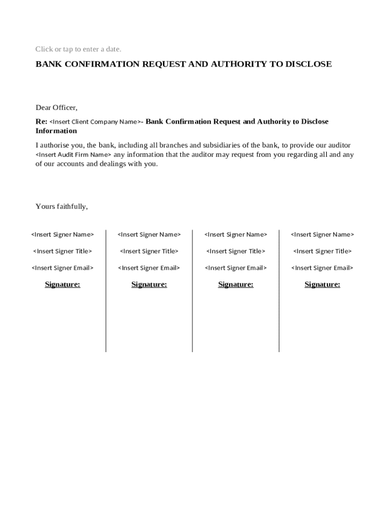 Who Needs the Bank Confirmation Request and Authority to Disclose?