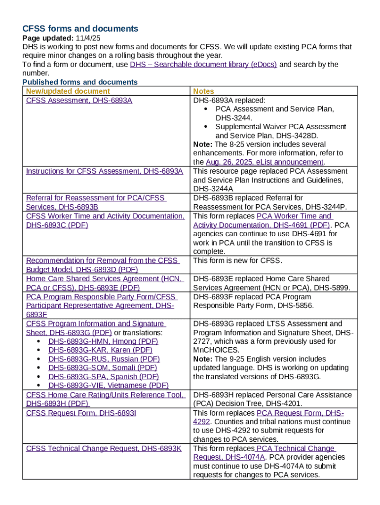 While specific deadlines may vary by program, it’s advisable to submit the CFSS Assessment Form DHS-6893A as soon as possible to avoid delays in receiving services.
