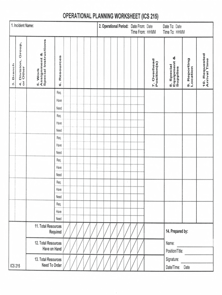 The main objective of the ICS 215 Operational Planning Worksheet is to improve communication and coordination regarding resource management during critical incidents. Utilizing this worksheet brings several benefits: