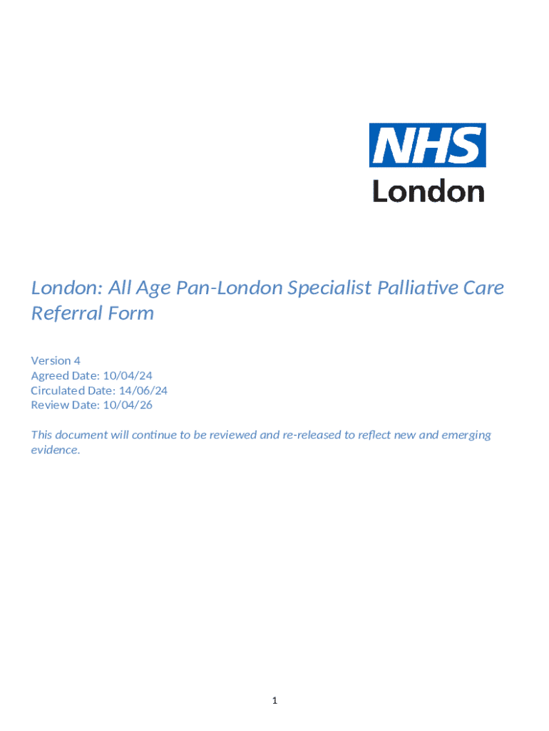 Get the free Pan-London Specialist Palliative Care Referral Form