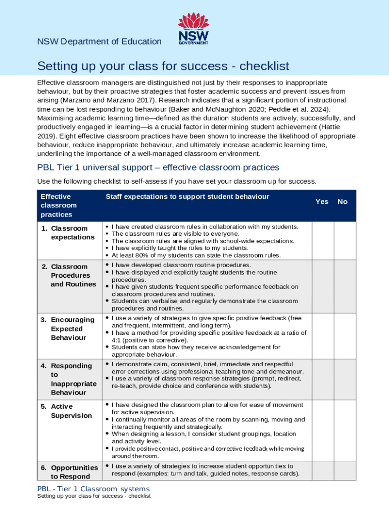 How to fill out the classroom success checklist