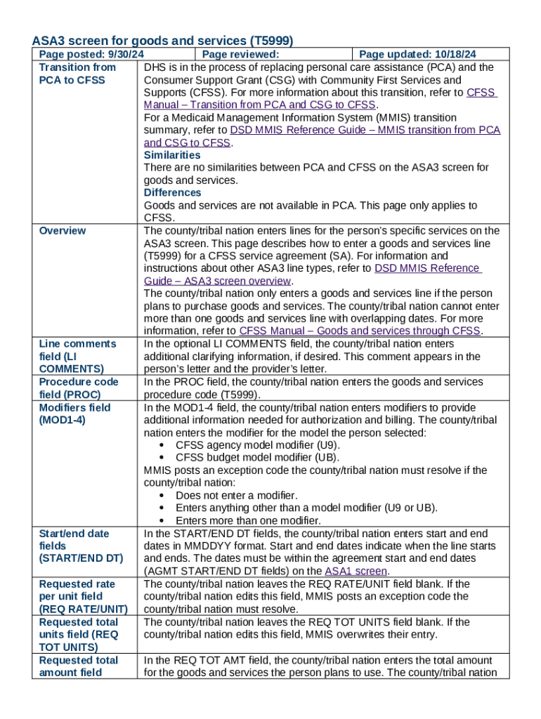 Examples and Samples of the CFSS Goods and Services Form T5999