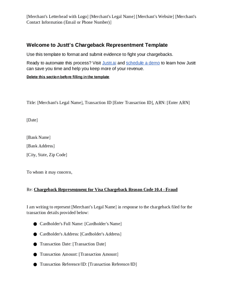 This template serves businesses looking to manage their chargeback responses efficiently while promoting their overall transaction integrity.