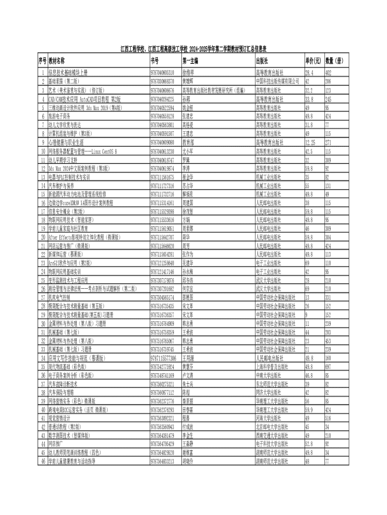 The Jiangxi Engineering School Textbook Order Form is a document used by educational institutions in China to order textbooks for the 2024-2025 academic year.