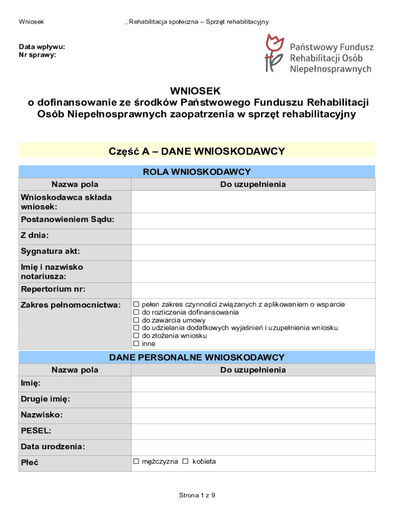 Get the free Poland Rehabilitation Equipment Grant Application