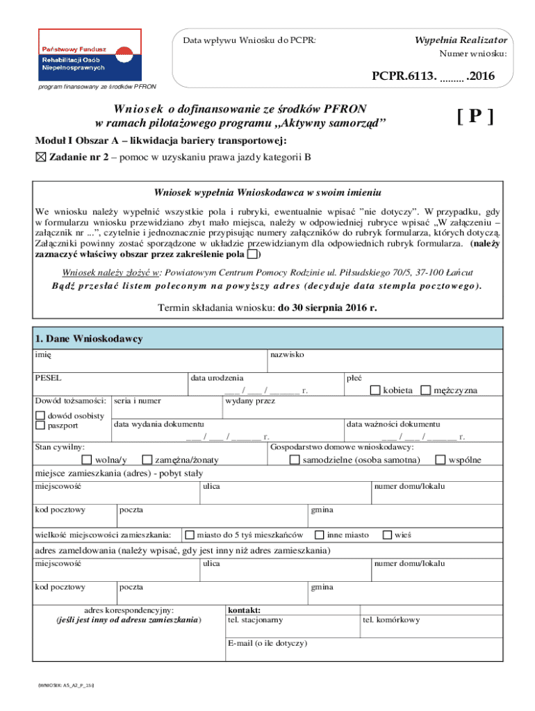 The Polish Disability Assistance Application serves as a crucial form designed for individuals with disabilities seeking financial support. This application plays a significant role in helping applicants secure funding specifically for obtaining a driver’s license, which can increase mobility and independence.