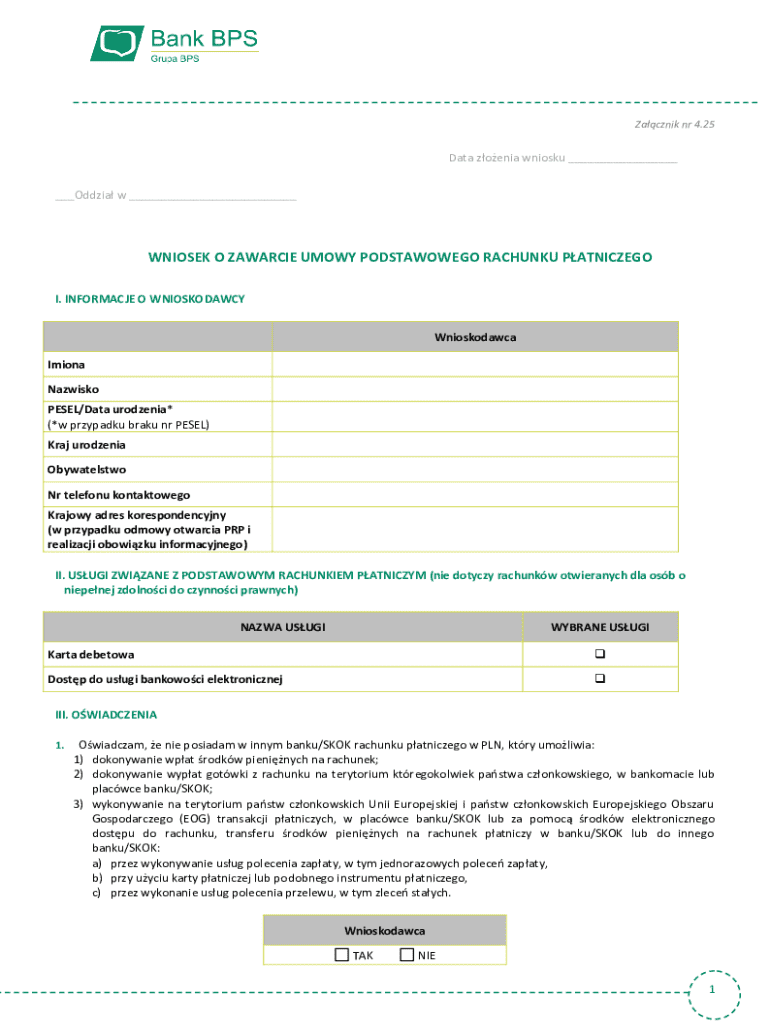 The Application for Basic Payment Account Agreement is a financial form used by individuals in Poland to request the opening of a basic payment account.