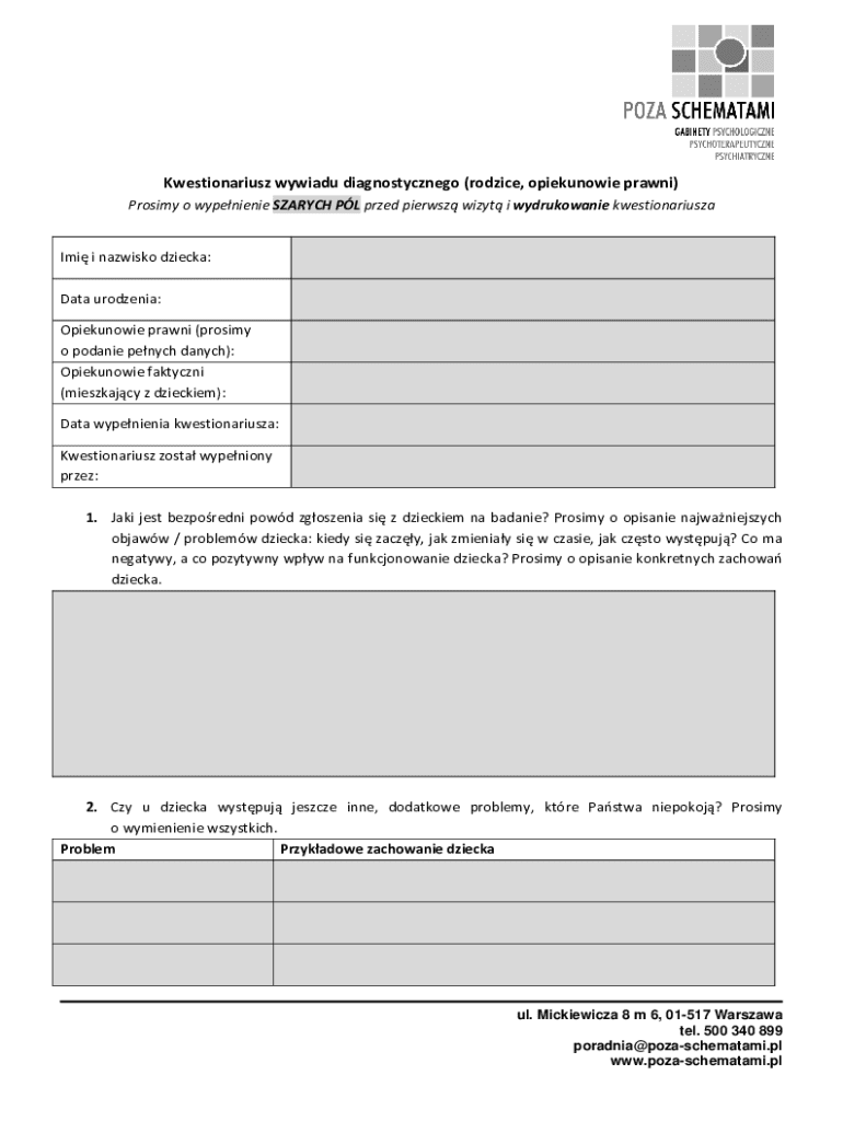 Get the free Diagnostic Interview Questionnaire