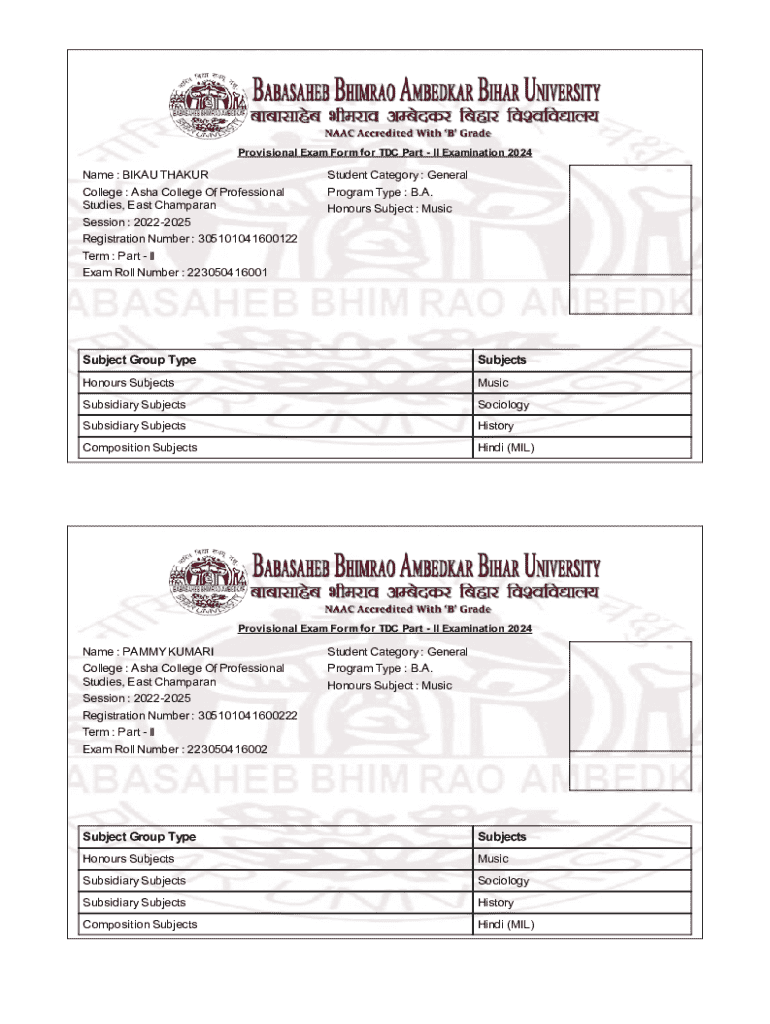 The TDC Part II Examination Form 2024 is an educational document used by students to register for the Part II examination of the TDC program.