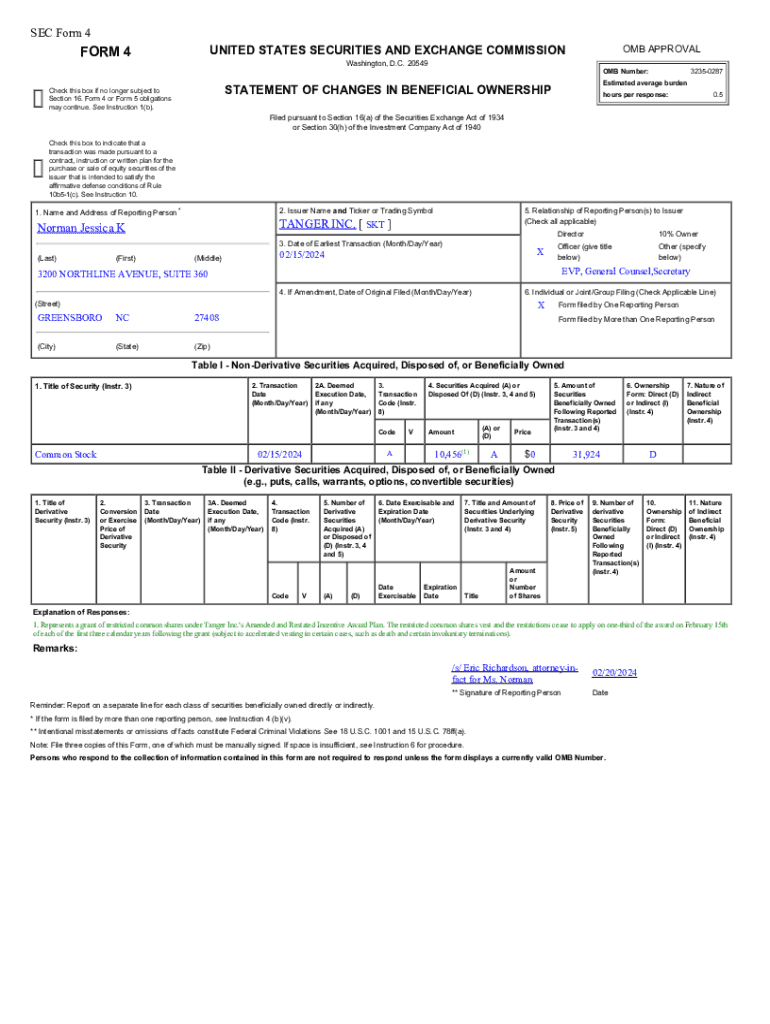 The SEC Form 4 Statement of Changes in Beneficial Ownership is a government form used by company insiders to report changes in their beneficial ownership of equity securities.
