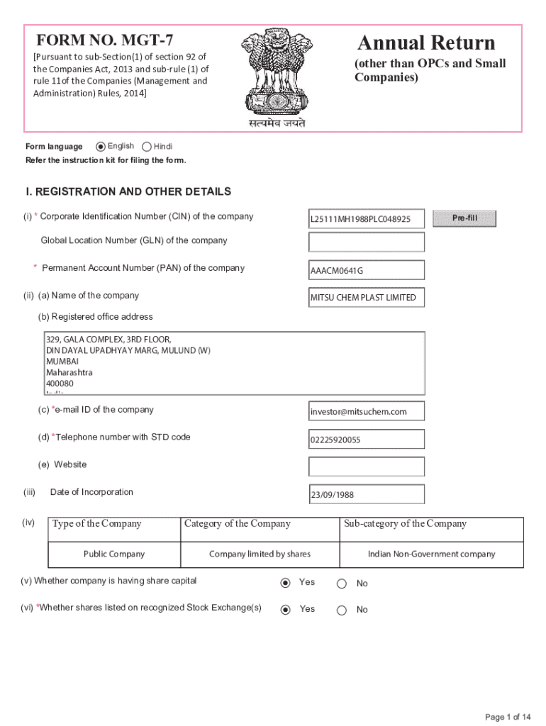 Comprehensive Guide to Mitsu Chem Plast Limited Form