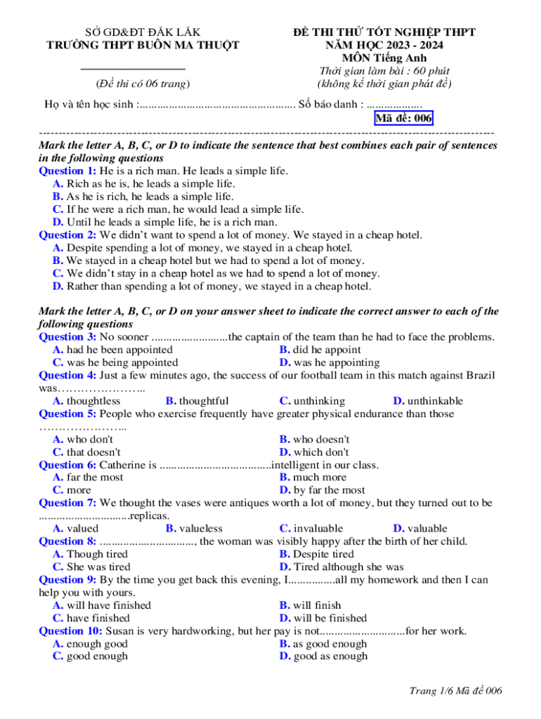 How to Fill Out the Vietnamese High School English Exam Template Online