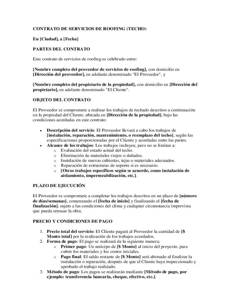 El roofing contract form, o formulario de contrato de techado, es un documento vital que establece los términos y condiciones de un proyecto de instalación o reparación de techos. Este formulario no solo formaliza el acuerdo entre el contratista y el cliente, sino que también ayuda a prevenir malentendidos y disputas legales al delinear claramente los derechos y responsabilidades de cada parte.