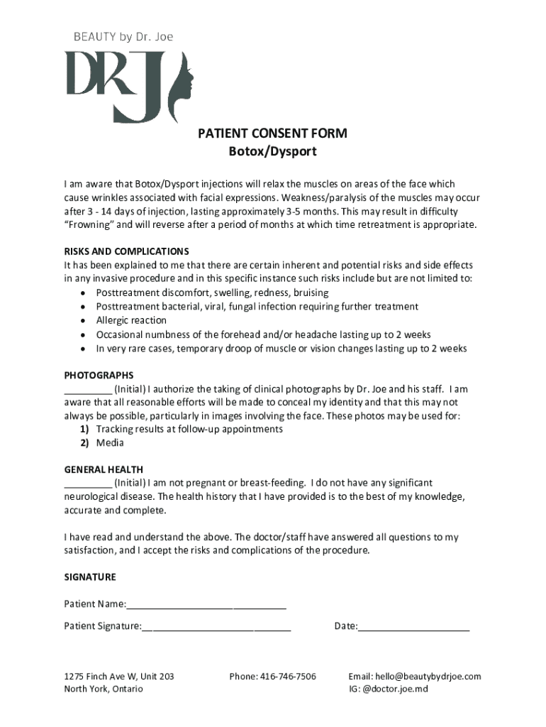 Key Features of the Patient Consent Form for Botox/Dysport