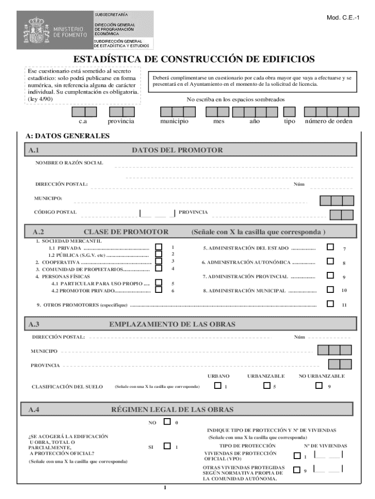 El Formulario de Estadísticas de Construcción en España es un documento vital diseñado para recopilar datos relevantes sobre proyectos de construcción. Su propósito principal es facilitar la obtención de estadísticas que ayuden a comprender el desarrollo del sector de la construcción en el país. Este formulario es esencial para la recopilación de información precisa, que a su vez permite a las municipalidades tomar decisiones informadas en relación a las infraestructuras y la planificación urbana.