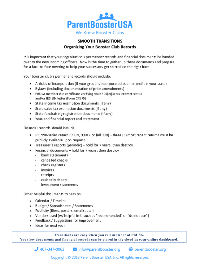 Get the free Booster Club Record Transition Guide