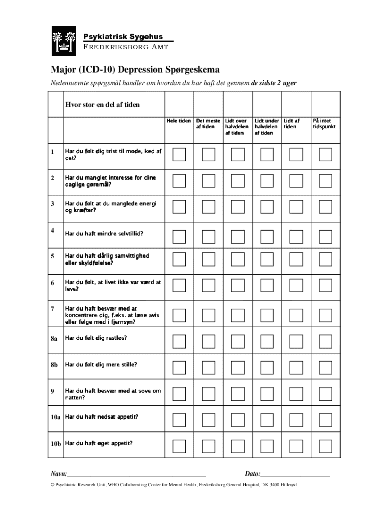Get the free Major Depression Questionnaire