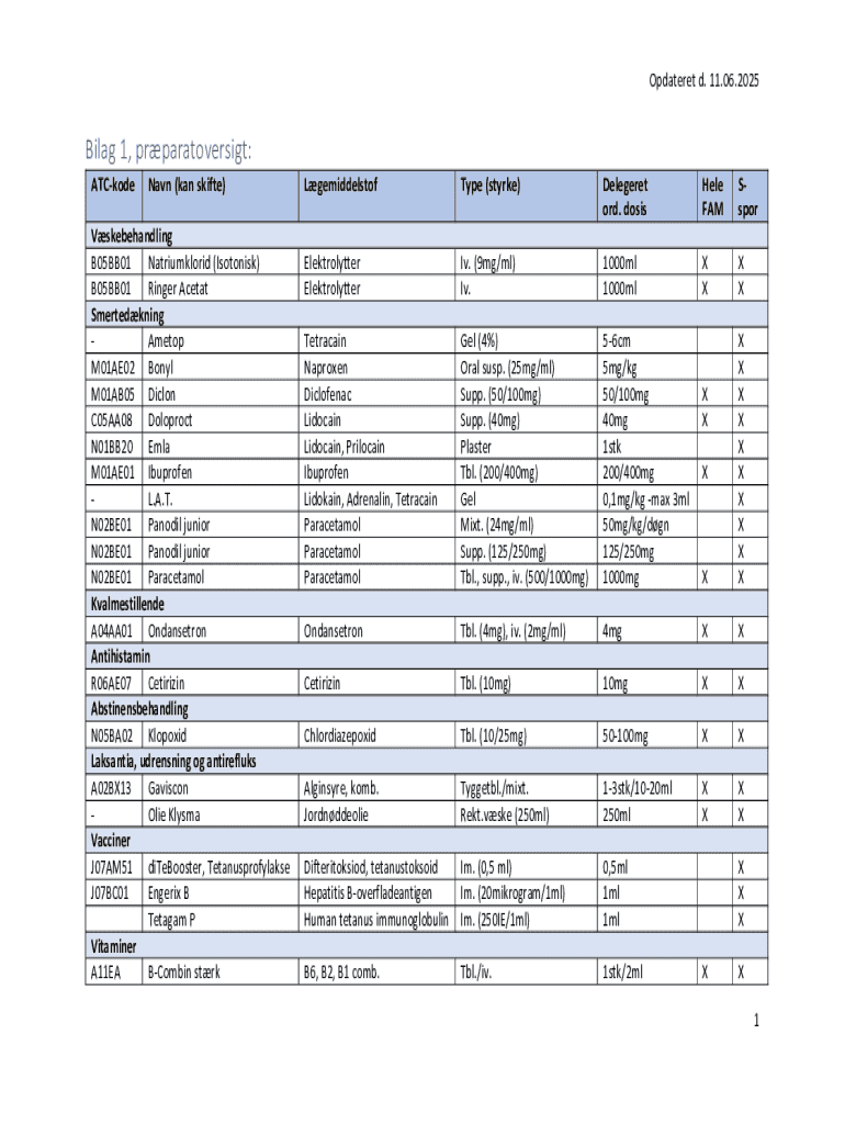 Completing the Medical Preparation Overview Form involves several key steps. First, each input field must be accurately filled, including details such as ATC-kode (ATC code), Navn (Name), and Lægemiddelstof (Active ingredient).