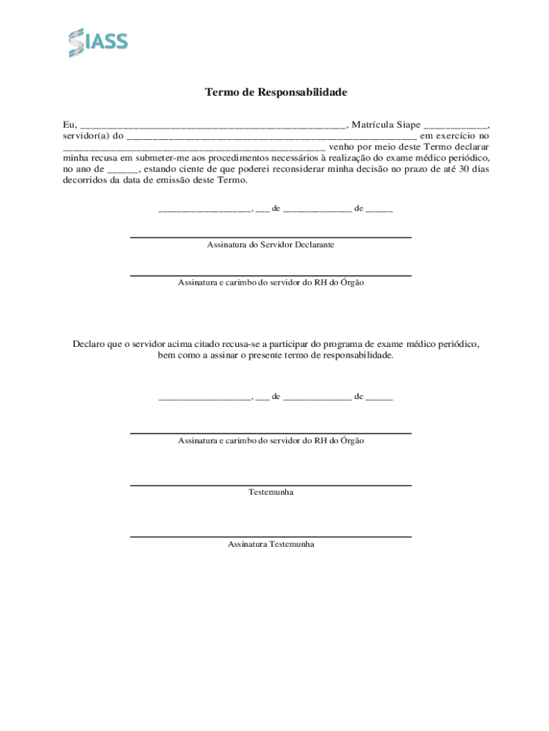 O Termo de Responsabilidade é um documento legal utilizado por servidores públicos no Brasil para declarar sua recusa em realizar exames médicos periódicos.
