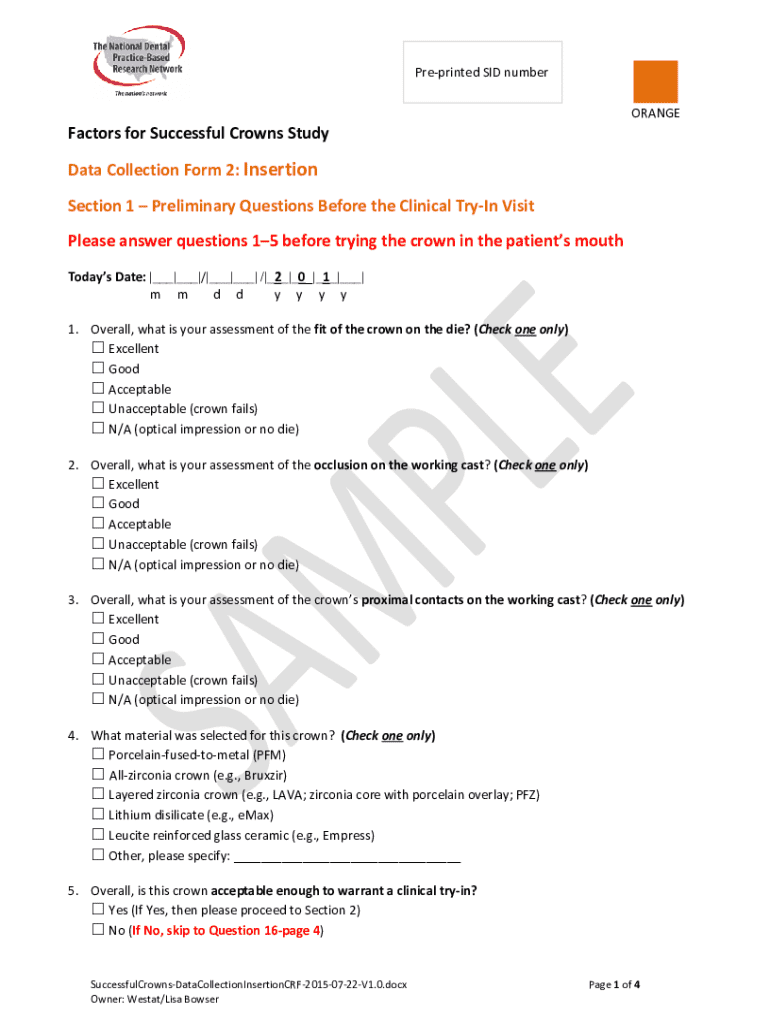 How to Fill Out the Dental Crown Insertion Data Collection Form Online