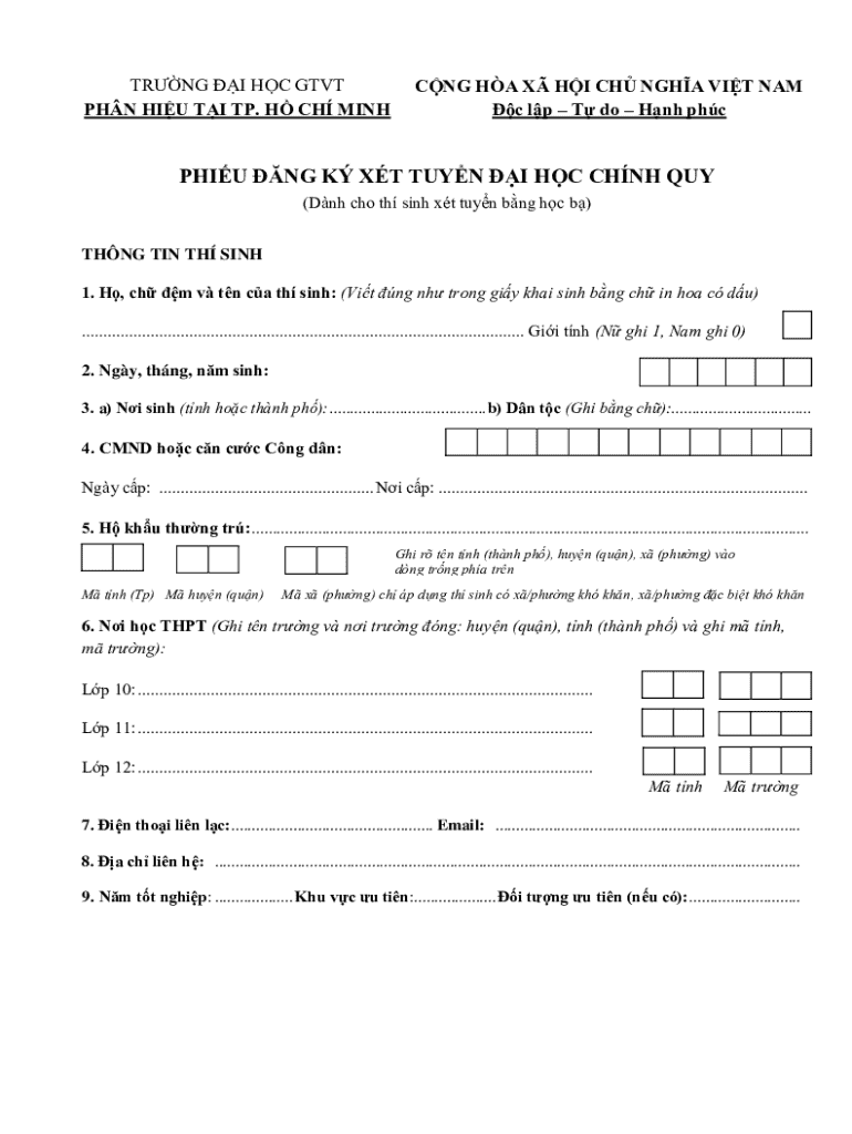 The Vietnamese University Admission Registration Form is intended for high school graduates and other individuals who wish to enroll in Vietnamese universities. It is vital for applicants to understand the eligibility criteria associated with submitting this form to ensure successful admission.