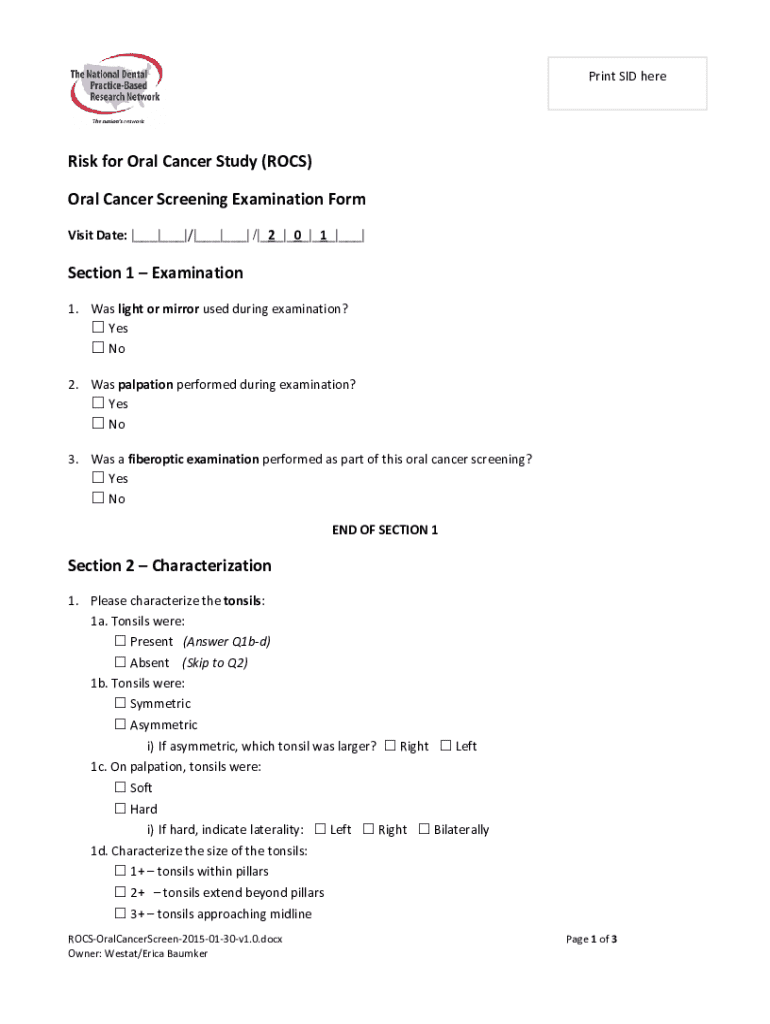 Get the free Oral Cancer Screening Examination Form
