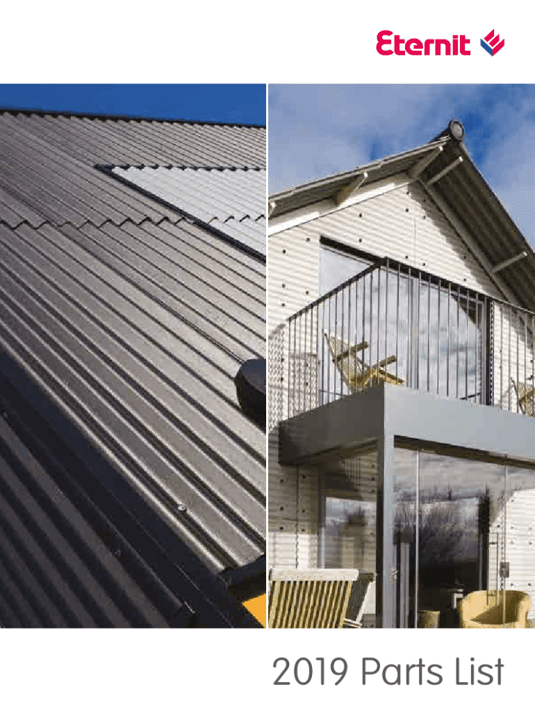 The 2019 Profile Sheet Parts List is a procurement document used by customers to order profiled sheeting and related products from Eternit.