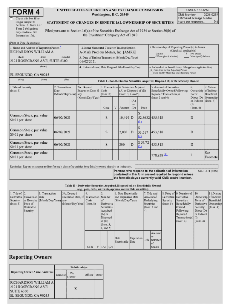 Get the free sec form 4 statement