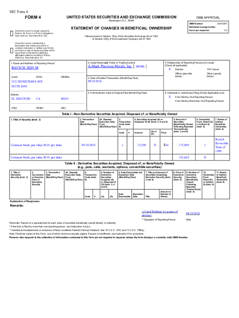 Get the free sec form 4 statement