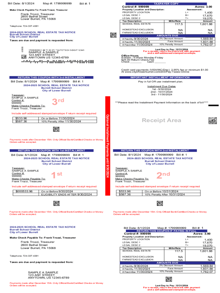 Property owners within the Burrell School District in Pennsylvania are eligible to use this tax notice to report their real estate tax obligations.
