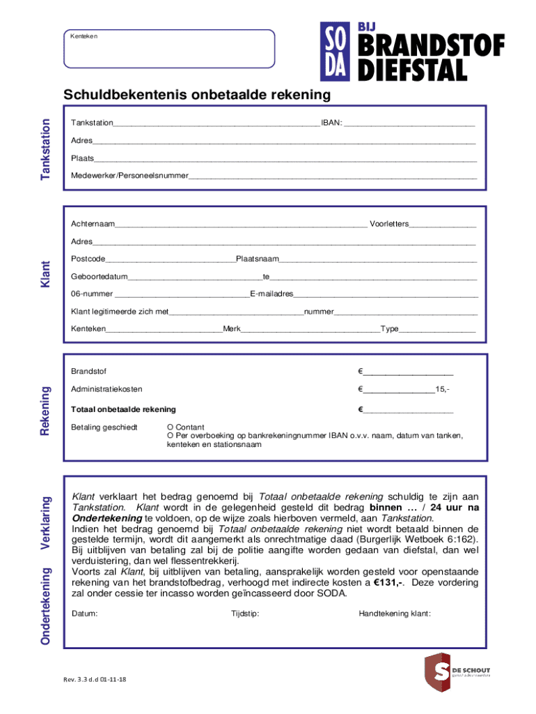 Dit formulier kan gebruikt worden door klanten die te maken hebben met onbetaalde brandstofrekeningen bij tankstations in Nederland.