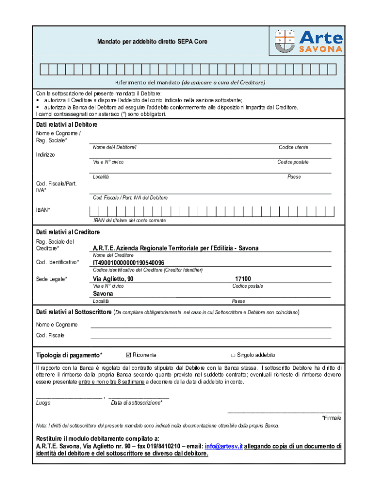 Modalità di Invio e Consegna del Mandato per Addebito Diretto SEPA Core