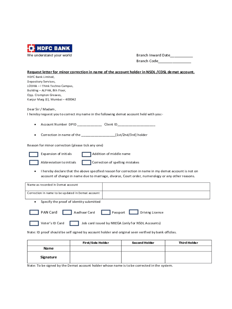 How to Fill Out the Request Letter for Minor Correction in Demat Account Name