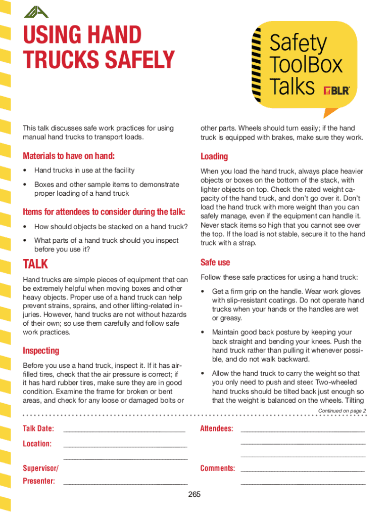 Get the free Hand Truck Safety Talk