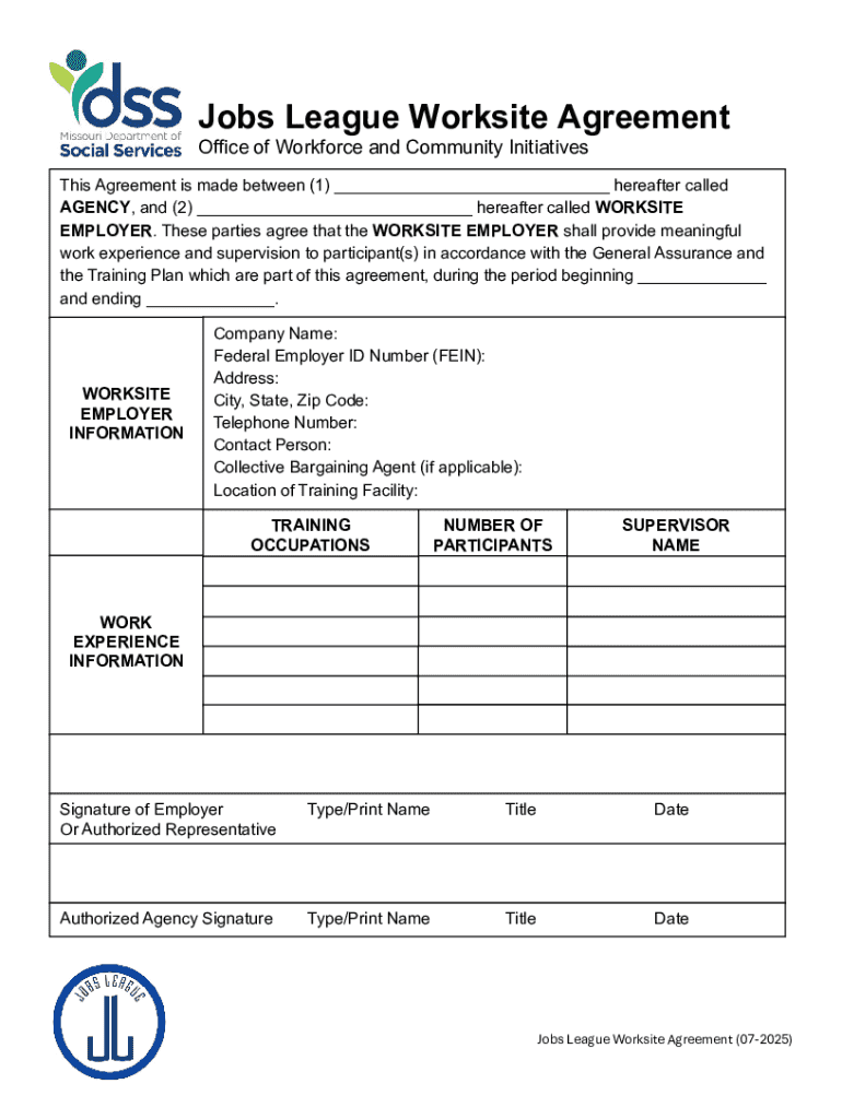 Get the free Jobs League Worksite Agreement