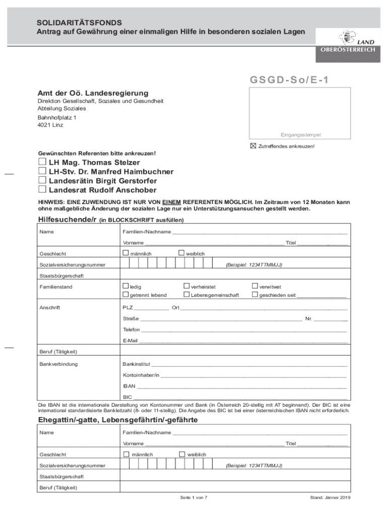 Das Solidaritätsfonds Antragsformular ist ein Dokument, das von Hilfesuchenden in Oberösterreich verwendet wird, um einmalige finanzielle Unterstützung in speziellen sozialen Situationen zu beantragen.