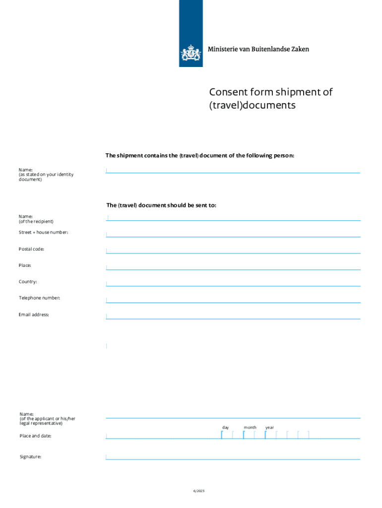 Get the free Consent Form for Shipment of Travel Documents