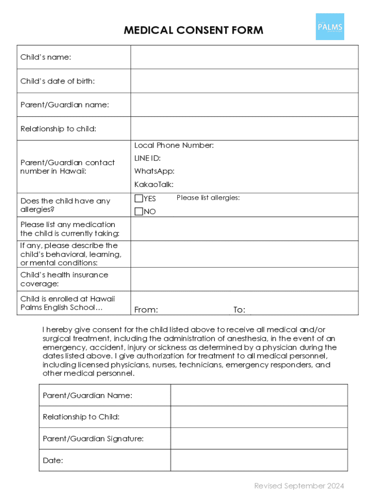 Get the free Medical Consent Form