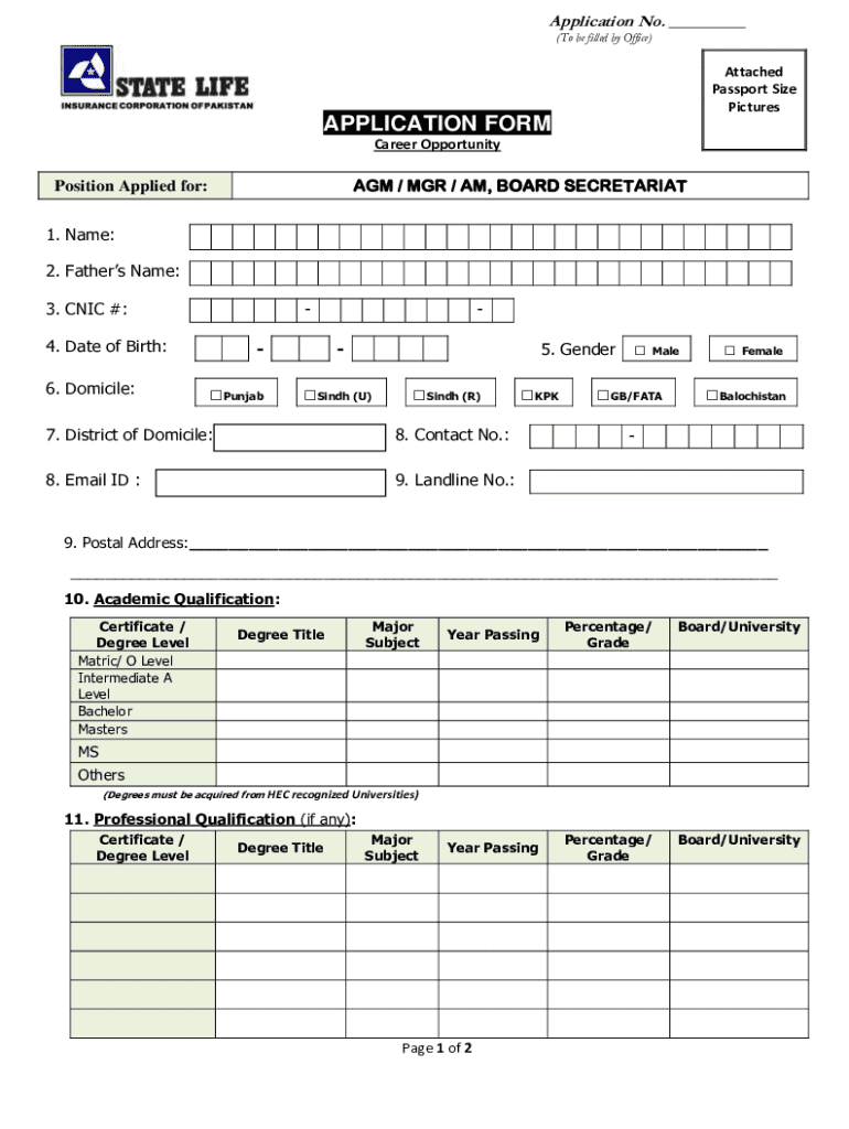 Job seekers applying for specific roles in Pakistan should utilize this form to ensure their applications are complete and compliant with employer requirements. Positions such as AGM, MGR, and Board Secretariat are among those that require this standardized application process.