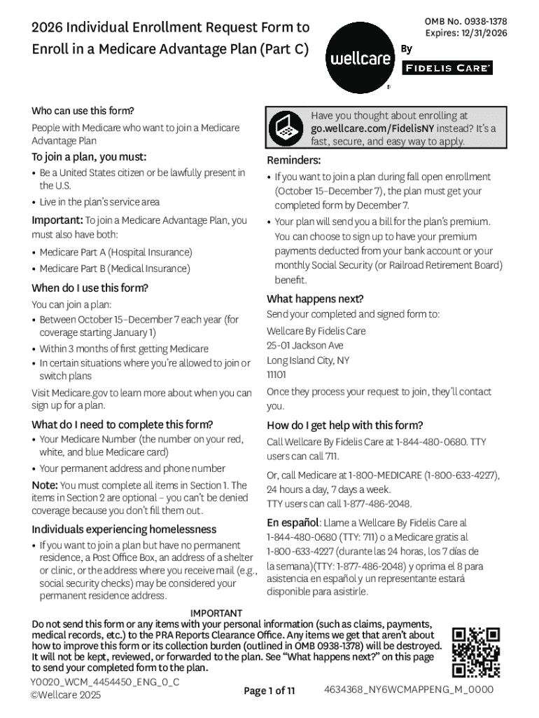 OMB No. 09381378 Expires: 12/31/20262026 Individual Enrollment Request Form to Enroll in a Medicare Advantage Plan (Part C)Who can use this form? People with Medicare who want to join a Medicare Advantage