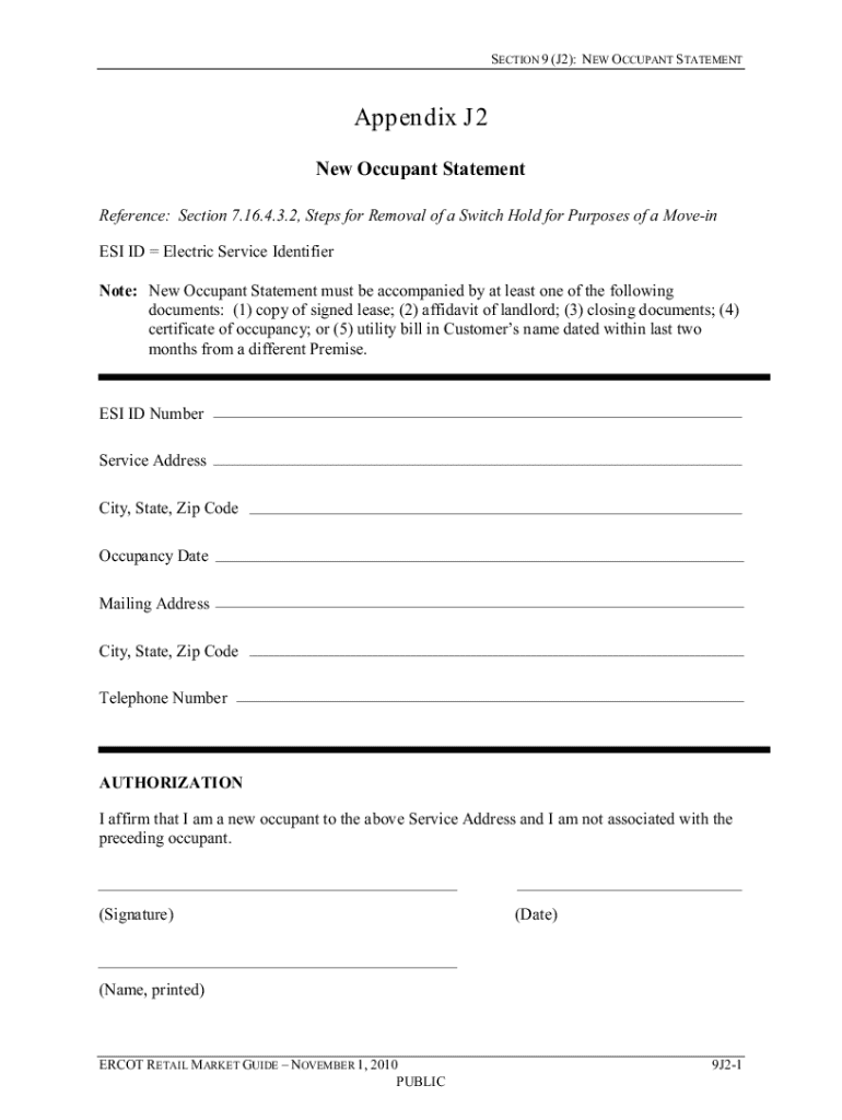 Get the free New Occupant Statement