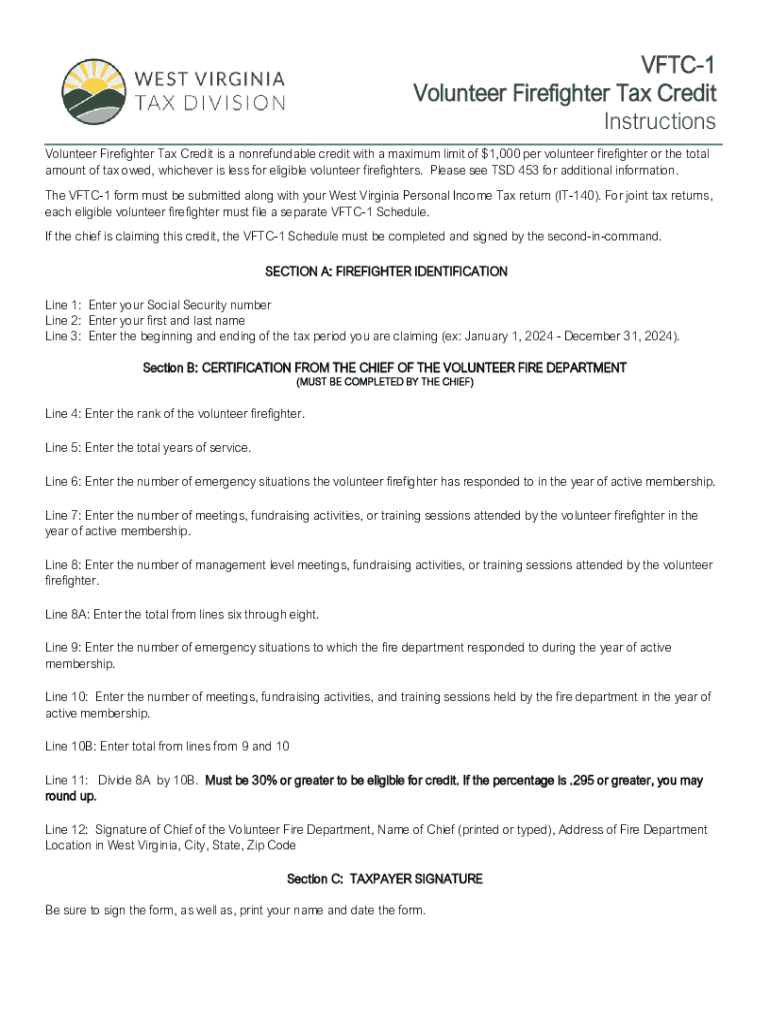 Eligibility for the VFTC-1 form extends primarily to volunteer firefighters and the Chief of the Volunteer Fire Department. To qualify, applicants must meet several requirements: