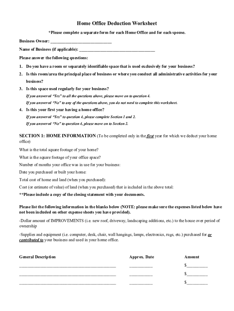 Comprehensive Guide to home office deduction worksheet